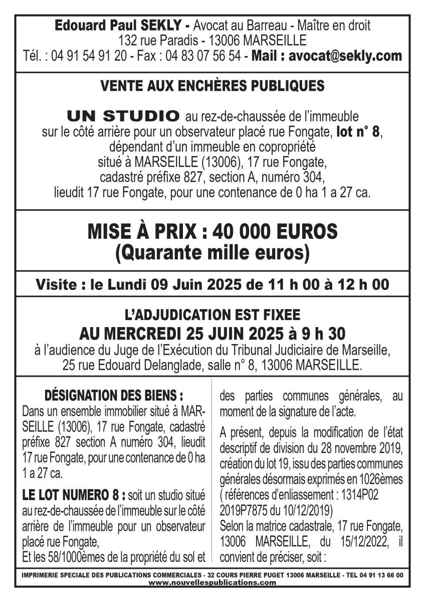 Pour un avocat enchères immobilières à Marseille dans les Bouches-du-Rhône, faites appel à CTC Avocats. Nous sommes spécialisés dans les enchères immobilières et nous mettons notre expertise à votre service pour garantir la réussite de vos transactions. Avec une connaissance approfondie du marché immobilier et des procédures d'enchères, CTC Avocats vous offre un accompagnement complet et sécurisé. Que vous soyez un investisseur ou un particulier, nous vous aidons à naviguer dans les complexités juridiques et à protéger vos intérêts. Contactez-nous dès aujourd'hui pour discuter de vos besoins en matière d'enchères immobilières.