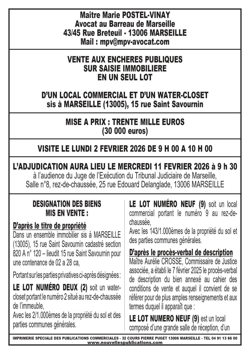 1°/ Au rez-de-chaussée, un local professionnel auquel on accède à partir de la Rue Marius Chalve composé d’une pièce principale, un placard, deux bureaux, une petite cuisine et un WC indépendant.