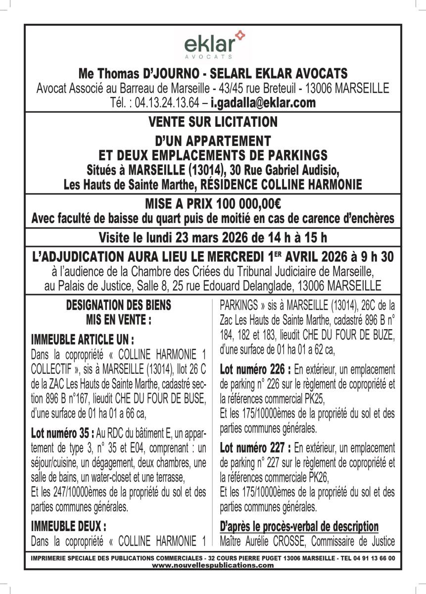 Situés à MARSEILLE (13014), 30 Rue Gabriel Audisio,