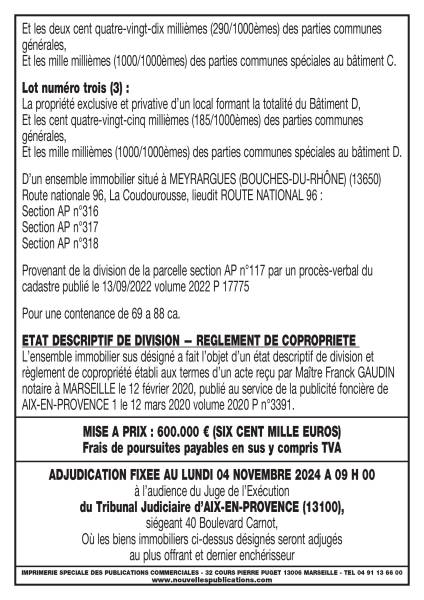 D’un ensemble immobilier situé à MEYRARGUES (BOUCHES-DU-RHÔNE) (13650)