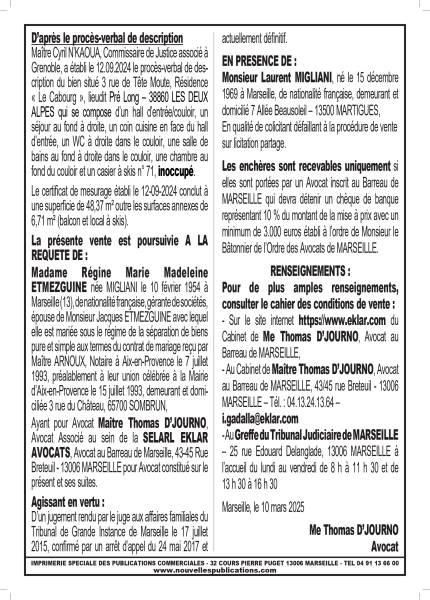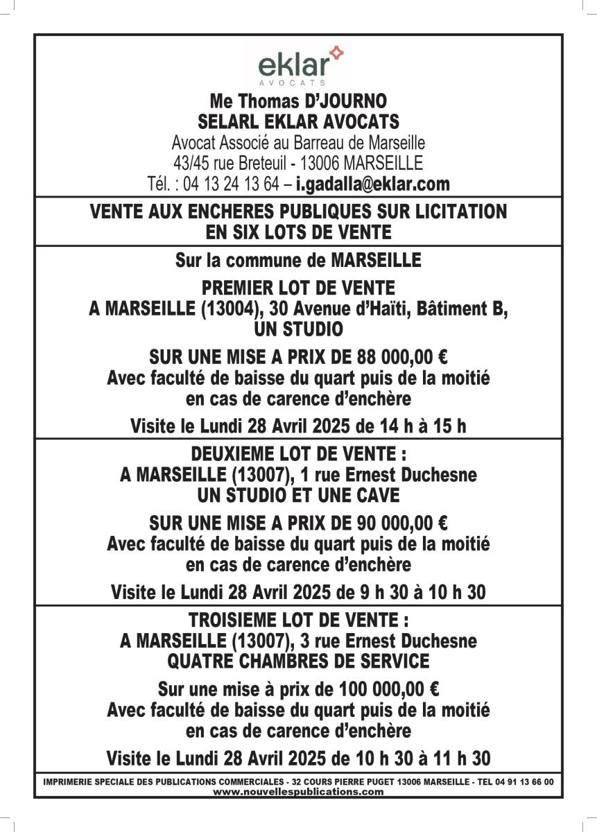 VENTE AUX ENCHERES PUBLIQUES SUR LICITATION