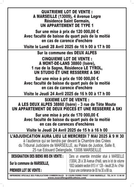 IMPRIMERIE SPECIALE DES PUBLICATIONS COMMERCIALES - 32 COURS PIERRE PUGET 13006 MARSEILLE - TEL 04 91 13 66 00