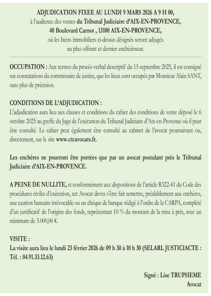 BOUC, le 3 janvier 1974, publié au 2eme bureau des hypothèques d’AIX-EN-PROVENCE le 8 janvier 1974 volume 688 n°4, approuvé