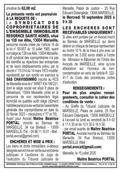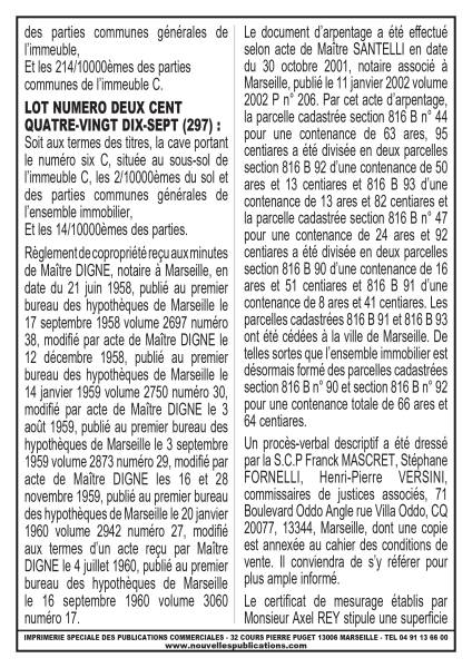 Lots n°100 et 297 de la copropriété « RESIDENCE SAINTE AGNES »,