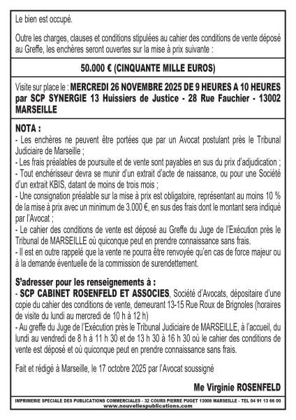 situé 18/50 Avenue de Saint Louis - 13015 MARSEILLE, cadastré section 905 E