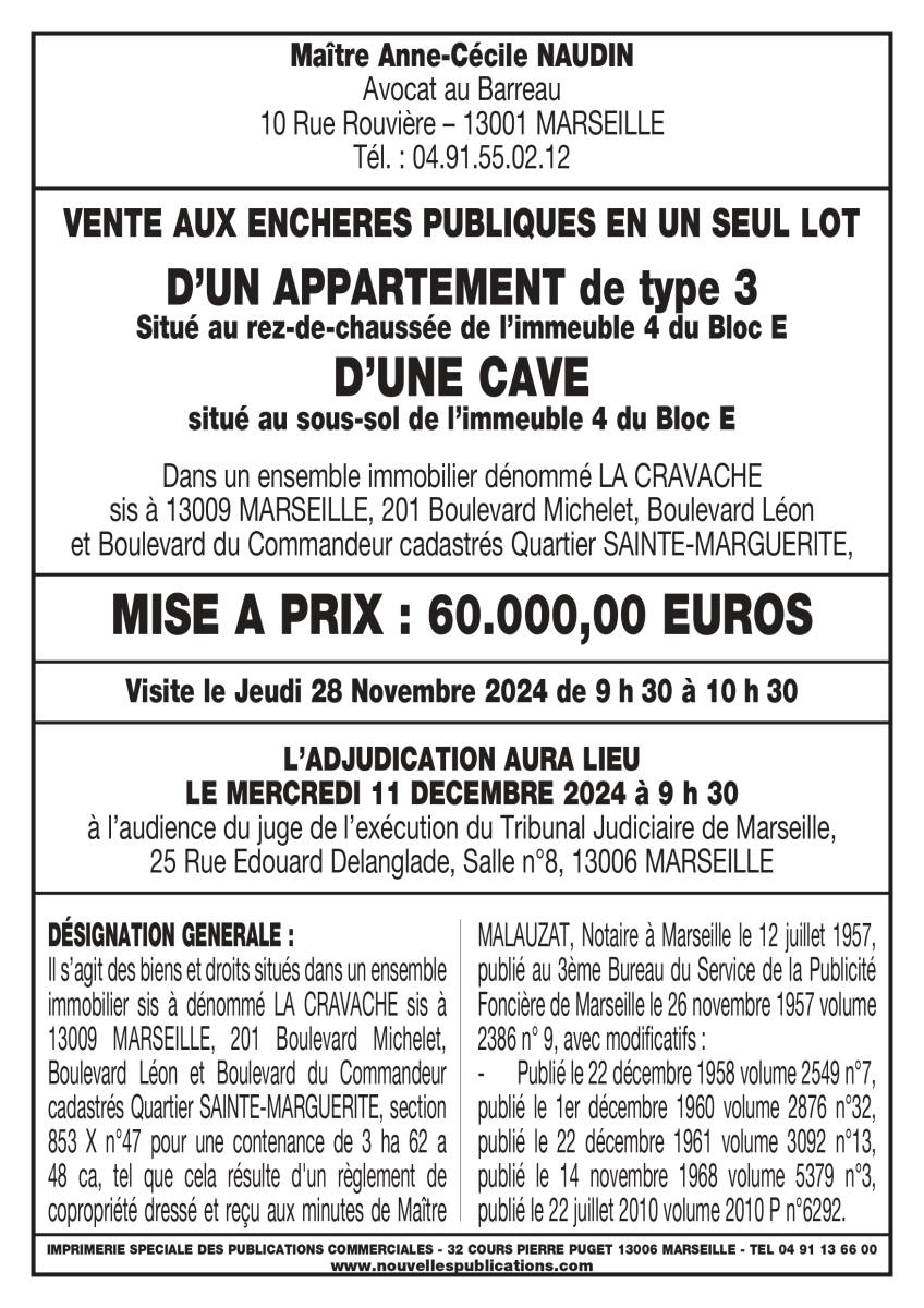 Dans un ensemble immobilier dénommé LA CRAVACHE