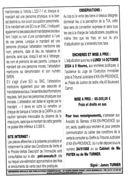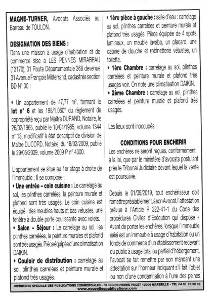 Appartement de 47,77 m2, dans une maison à usage d'habitation et de commerce sise à LES PENNES MIRABEAU (13170),31 route Départementale 368 devenue 31 Avenue François Mitterand