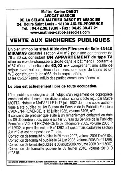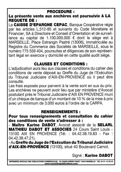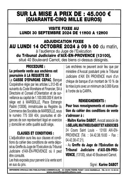 VENTE AUX ENCHERES DU 14/10/2024 Quartier la Diote 13105 MIMET