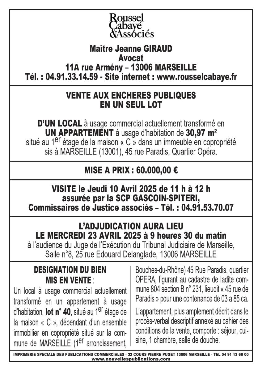 sis à MARSEILLE (13001), 45 rue Paradis, Quartier Opéra.