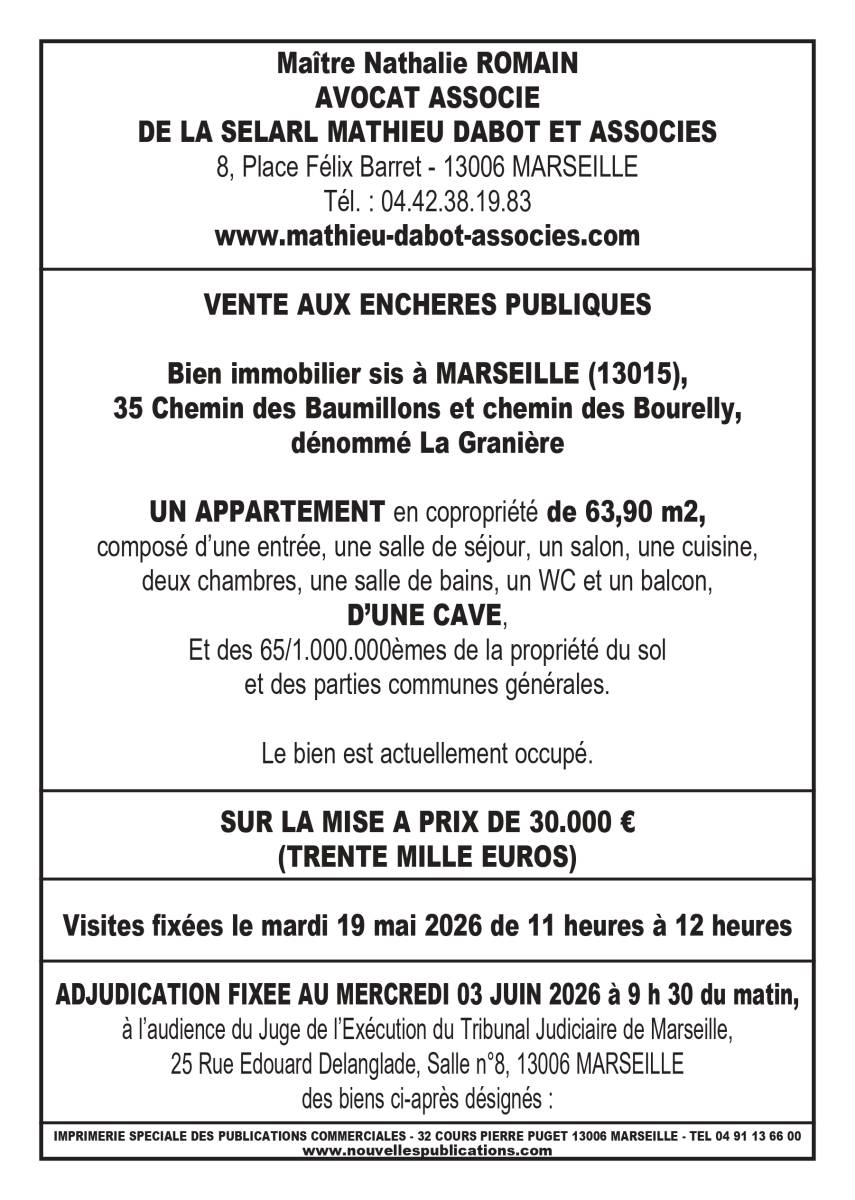 Bien immobilier sis à MARSEILLE (13015),