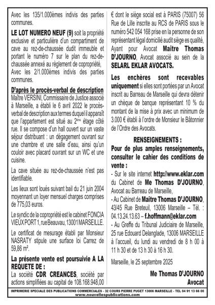 VENTE AUX ENCHERES MARSEILLE du 5/11/25 APPARTEMENT