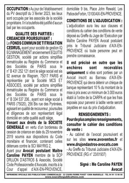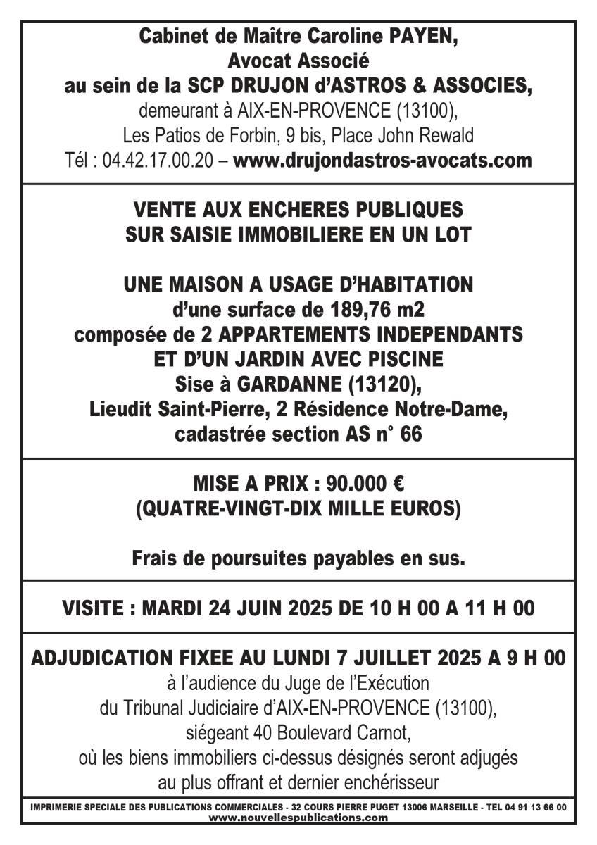 SUR SAISIE IMMOBILIERE EN UN LOT